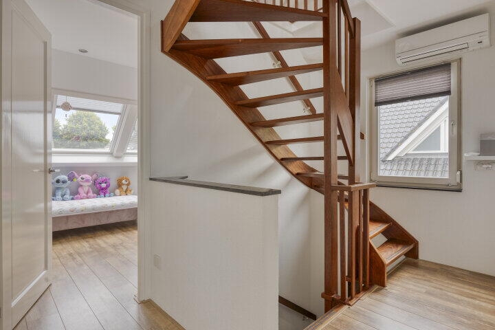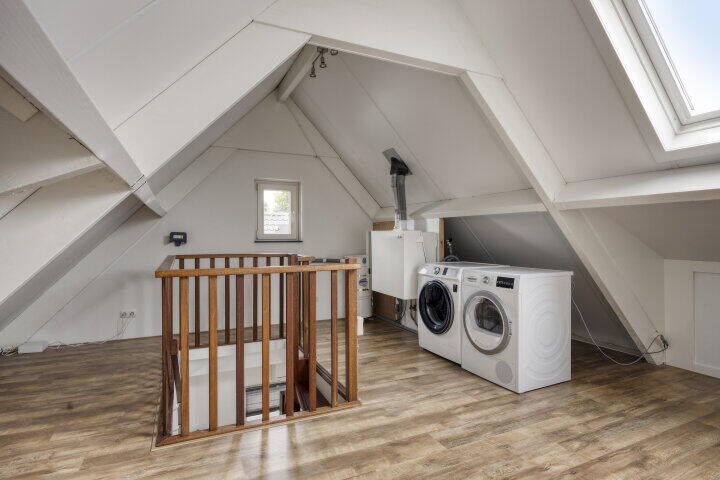 Via een vaste trap bereik je de tweede verdieping: de grote keurig afgewerkte open ruimte is voorzien van extra bergruimte en biedt veel mogelijkheden. Of je hier nu een extra slaapkamer, een werkkamer of een hobbyruimte van maakt – het kan allemaal. Wasmachine- en drogeraansluitingen zijn al aanwezig.