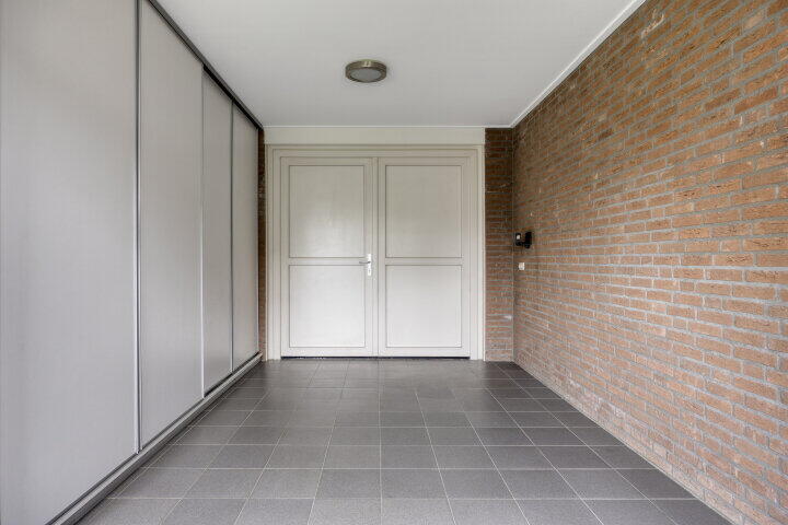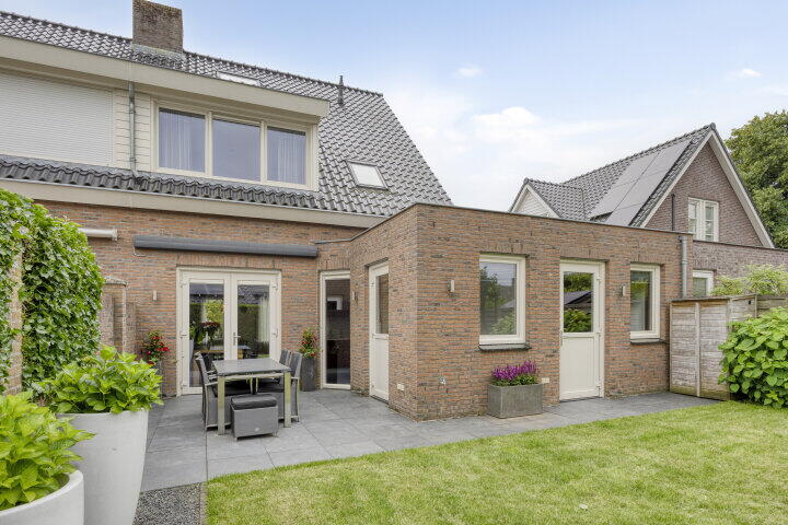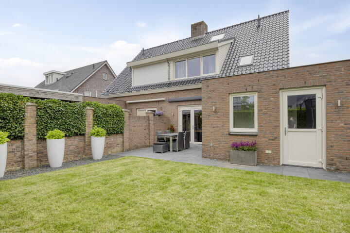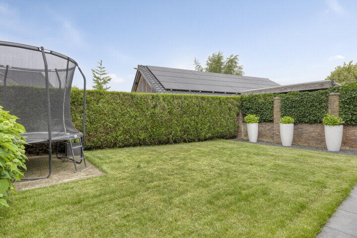 De achtertuin ligt op het noordwesten, maar dankzij de breedte en ligging geniet je hier van de middag- en avondzon. De tuin biedt veel privacy en is groot genoeg voor een terras, speelplek én een stukje groen. Via de tuin heb je toegang tot de bijkeuken en garage. Aan de voorkant is er een nette voortuin en voldoende parkeerruimte op eigen terrein onder de carport.